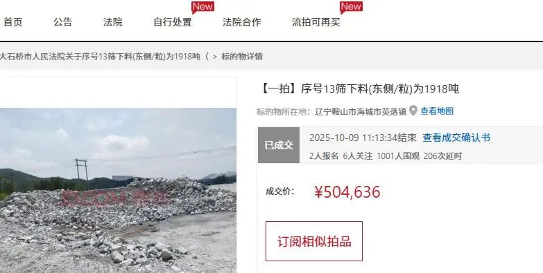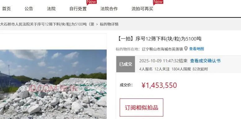 鞍山市5100噸鎂礦石56萬起被拍賣,拍出145萬高價