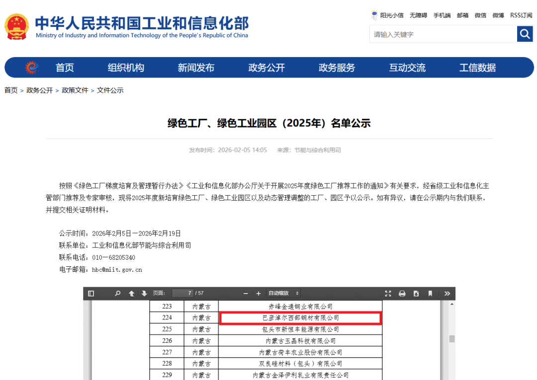 日前,工業(yè)和信息化部公布2025年度國家級綠色工廠、綠色工業(yè)園區(qū)名單,西部礦業(yè)所屬巴彥淖爾西部銅材有限公司憑借在能源低碳化、資源高效化、生產(chǎn)潔凈化等方面的突出表現(xiàn)成功入選,標(biāo)志著企業(yè)綠色制造水平達(dá)到國家標(biāo)桿級標(biāo)準(zhǔn),成為有色金屬行業(yè)綠色轉(zhuǎn)型的典范。